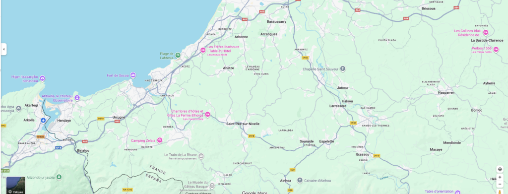 Espelette, Larressore, Souraïde, Ainhoa, Saint pée sur nivelle, Ahetze, Ascain, Sare, Ainhoa, Urrugne, Ciboure, Saint jean de luz, Hendaye Etc…